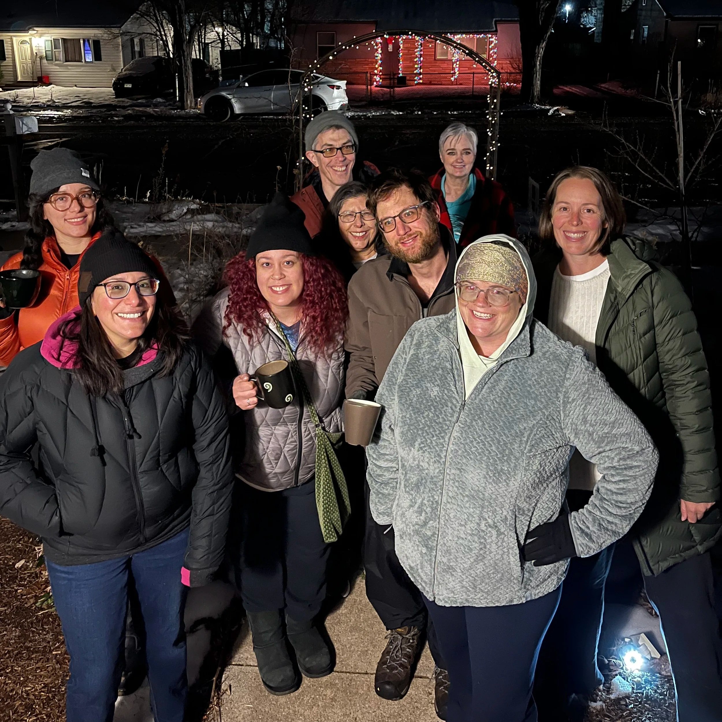 For the second year in a row, neighbors gathered right in the driveway of Kelly Bull, Hey Neighbor’s Executive Director, to sip steaming mugs of homemade hot cocoa, catch up with familiar faces, and warmly welcome new neighbors into the community. Instead of formal invitations or elaborate setups, this gathering stayed rooted in exactly what makes neighborhood connection work. Keep it easy. Keep it welcoming. Keep it human.